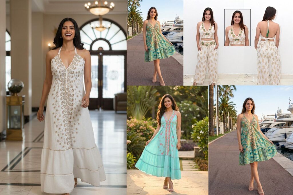 Flowing silhouettes, resort wear, and export-ready ladies clothing designed for global retail and wholesale markets.